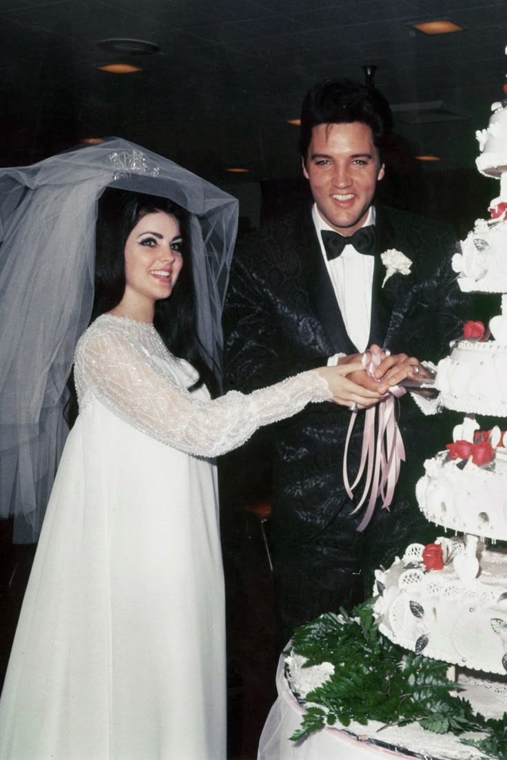 The dress. The veil. The moment. Priscilla Presley's 1967 wedding look, designed by her friend and dressmaker, remains one of the most recognizable bridal images in history. The heavily embroidered bodice, the high neckline, the yards of illusion tulle: it was bold and romantic in equal measure. Today's brides who lean toward maximalist, ornate detail owe a quiet debt to Priscilla.